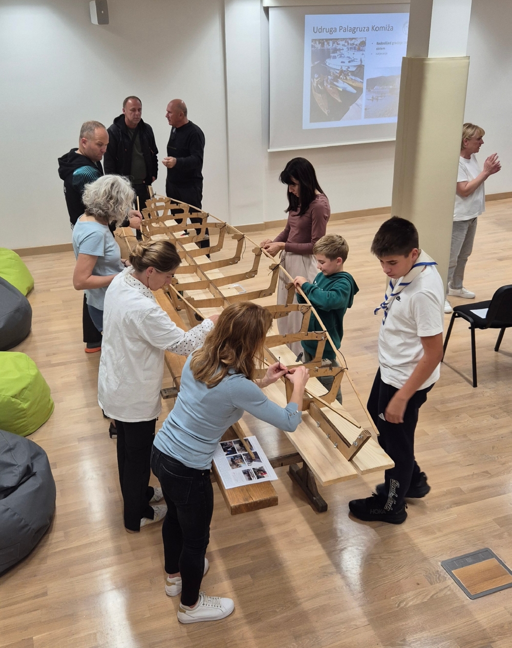 Kroz radionicu, djeca i mladi imali su priliku uroniti u svijet tradicijske brodogradnje, učeći o izradi replike komiške gundule, jednog od najpoznatijih tipova drvenih brodova s područja Jadranskog mora. Aktivnosti su uključivale niz zanimljivih zadataka, od sastavljanja dijelova broda poput pjona i copula, do crtanja i rezanja dijelova koji će činiti samu gundulu. Svi sudionici radionice tako su imali priliku na jedinstven način doprinijeti stvaranju spomenute replike. Zadatak nije bio samo tehničke prirode – djeca su crtala, rezala i oblikovala drvene dijelove, ali i na svaki način osobno obilježila svoj rad. Svaki izrađeni dio broda nosio je njihov potpis, čime su ujedno ostavili trag u tradiciji brodogradnje.
