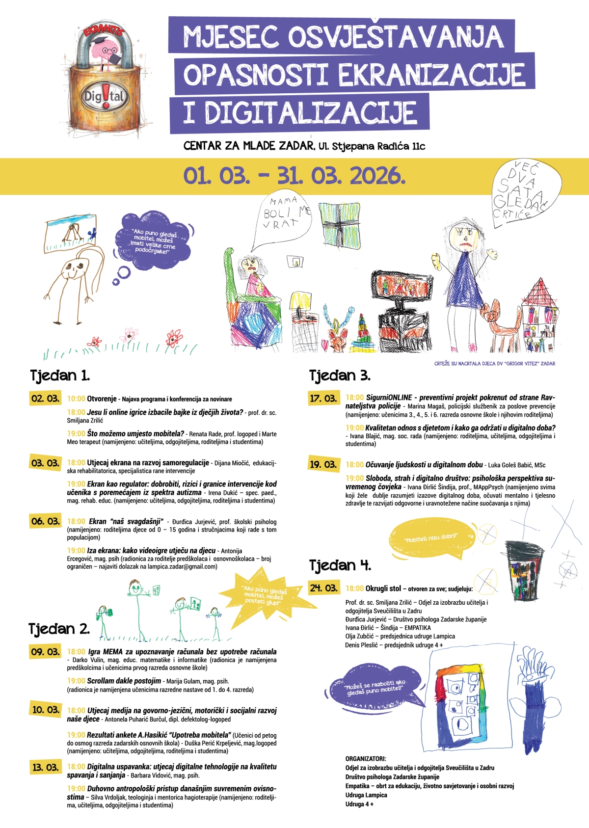 Upravo iz tog razloga, tijekom cijelog ožujka u Centru za mlade Zadar održat će se poseban Mjesec osvještavanja opasnosti ekranizacije i digitalizacije! 📅🎉