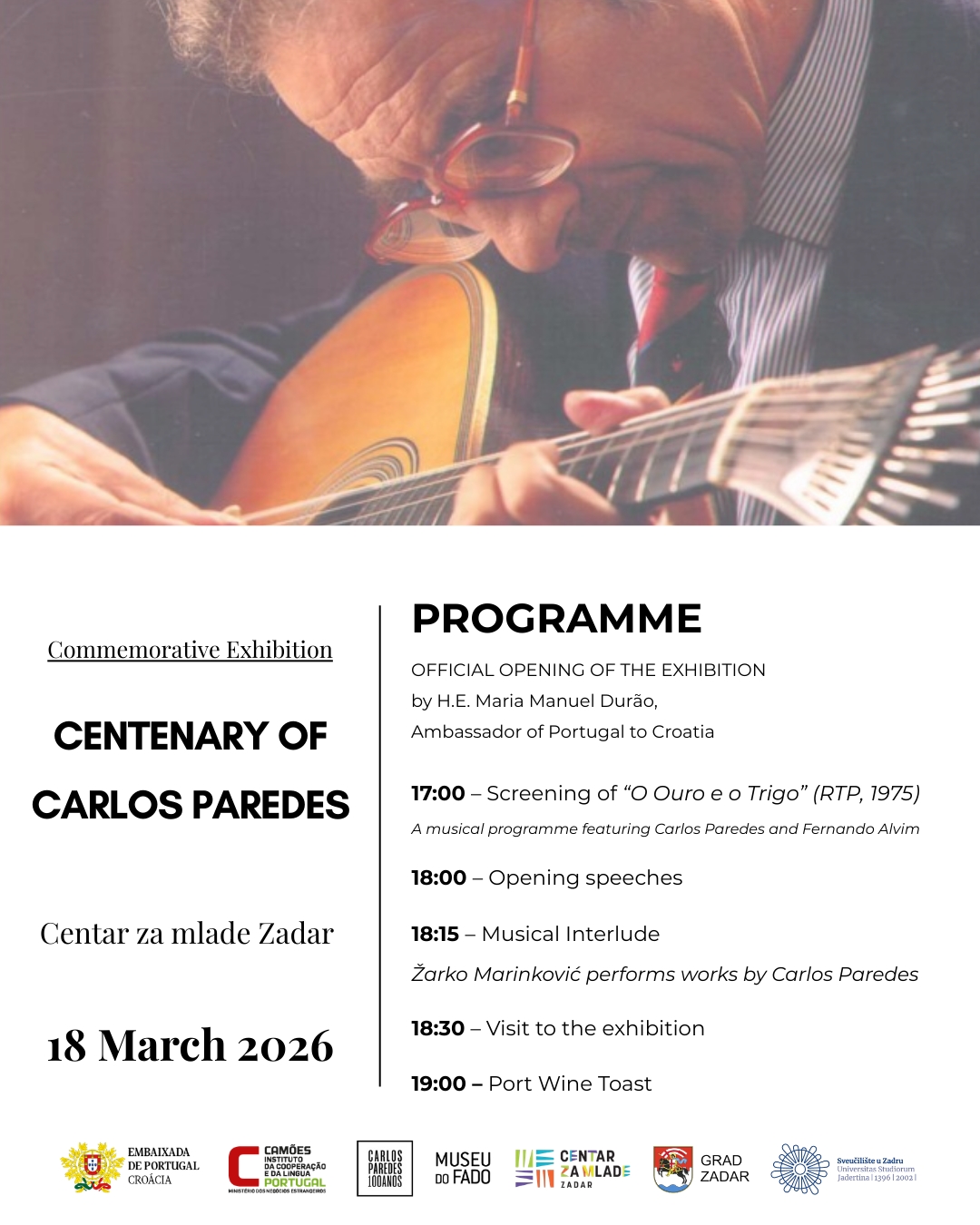 Pozivamo vas na otvorenje izložbe posvećene legendarnom portugalskom gitaristu Carlosu Paredesu, u povodu 100. obljetnice njegova rođenja.