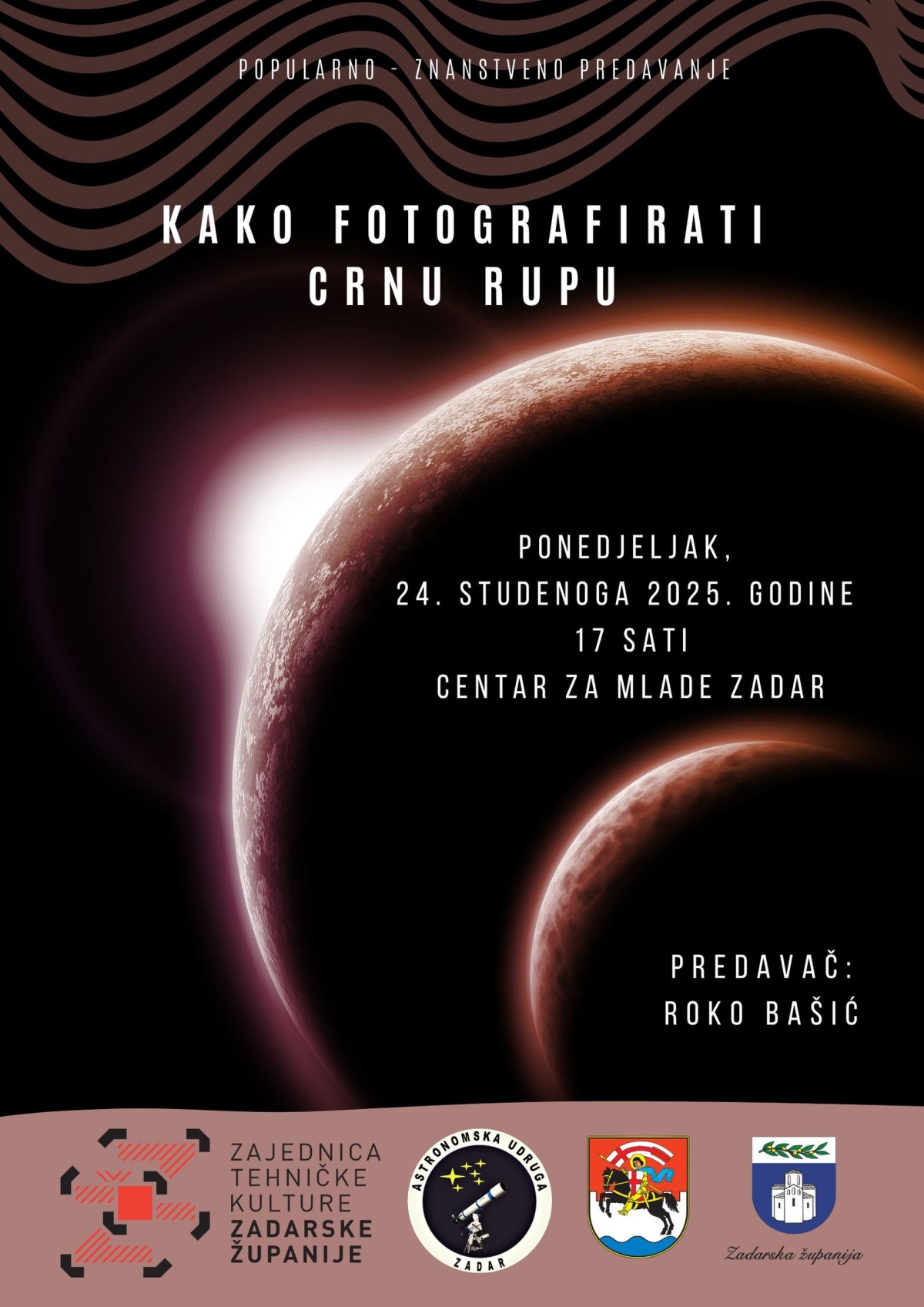 Predavanje “Čakavski zvjezdopis u zvjezdanim pričama s otoka Krka” u organizaciji Ogranka Matice hrvatske u Zadru, Zajednice tehničke kulture Zadarske županije i Astronomske udruge Zadar održat će se u srijedu, 19. studenog 2025. u 18:00 sati u dvorani Mala scena Centra za mlade Zadar, na koje ste svi pozvani.