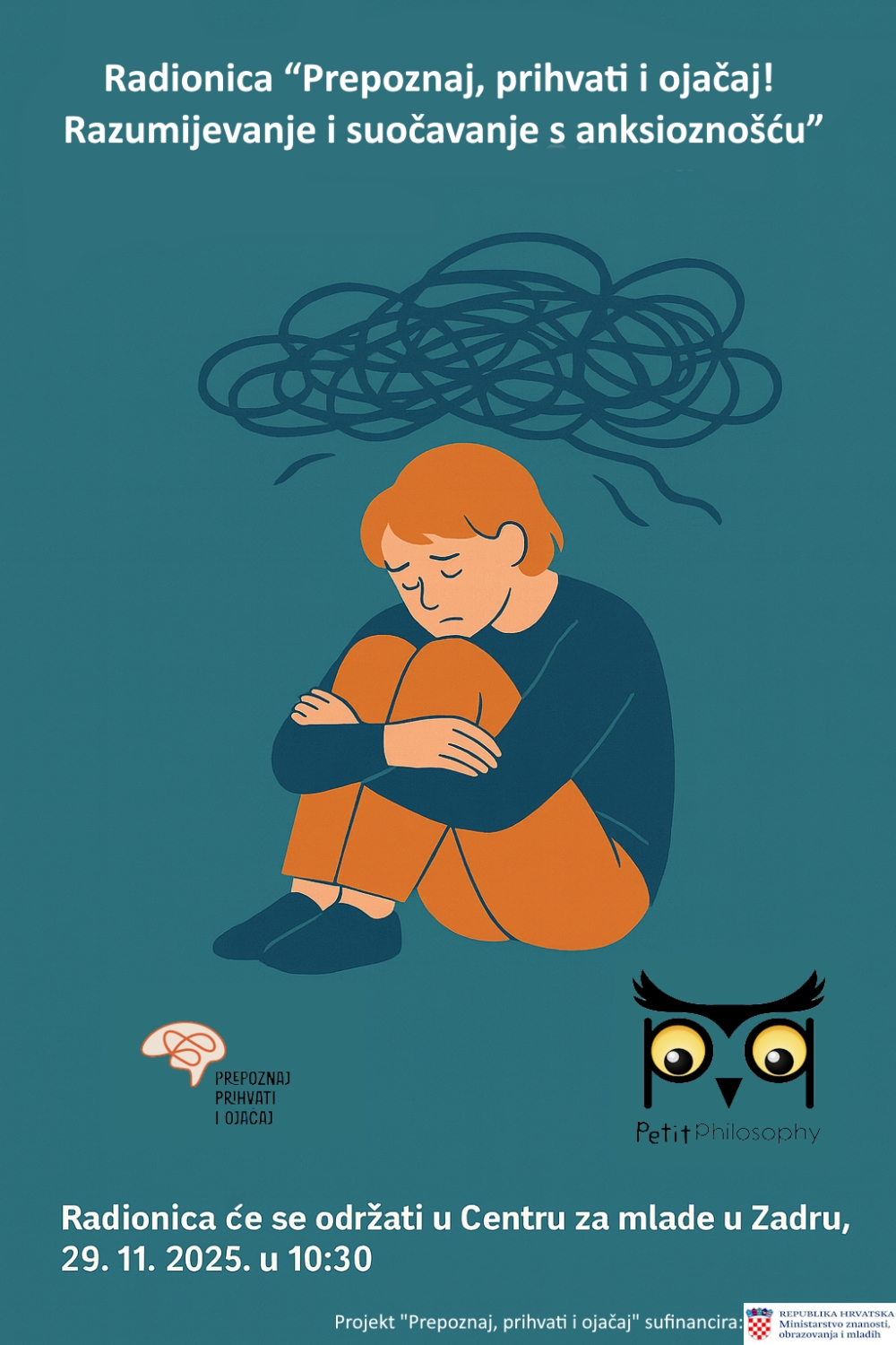 U organizaciji Udruge Mala filozofija u subotu, 29. studenog 2025. godine u 10:30 u Centru za mlade Zadar održat će se radionica „Prepoznaj, prihvati i ojačaj!“.