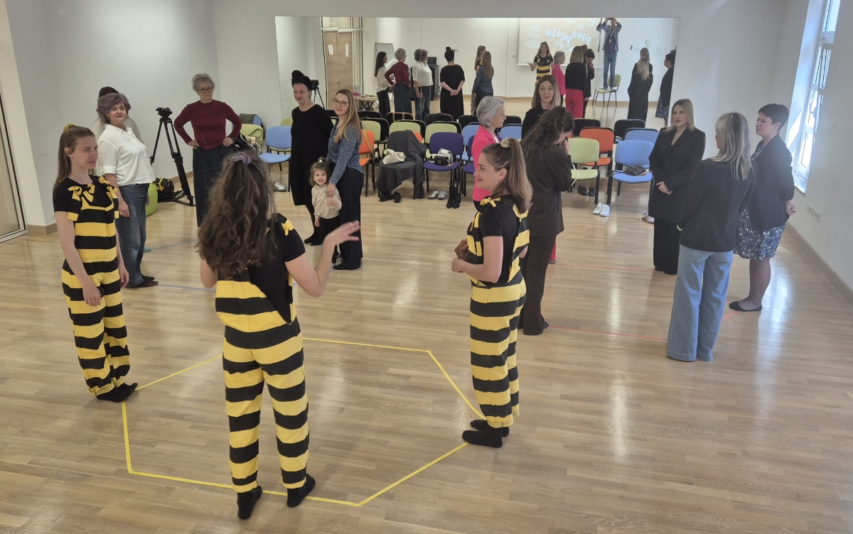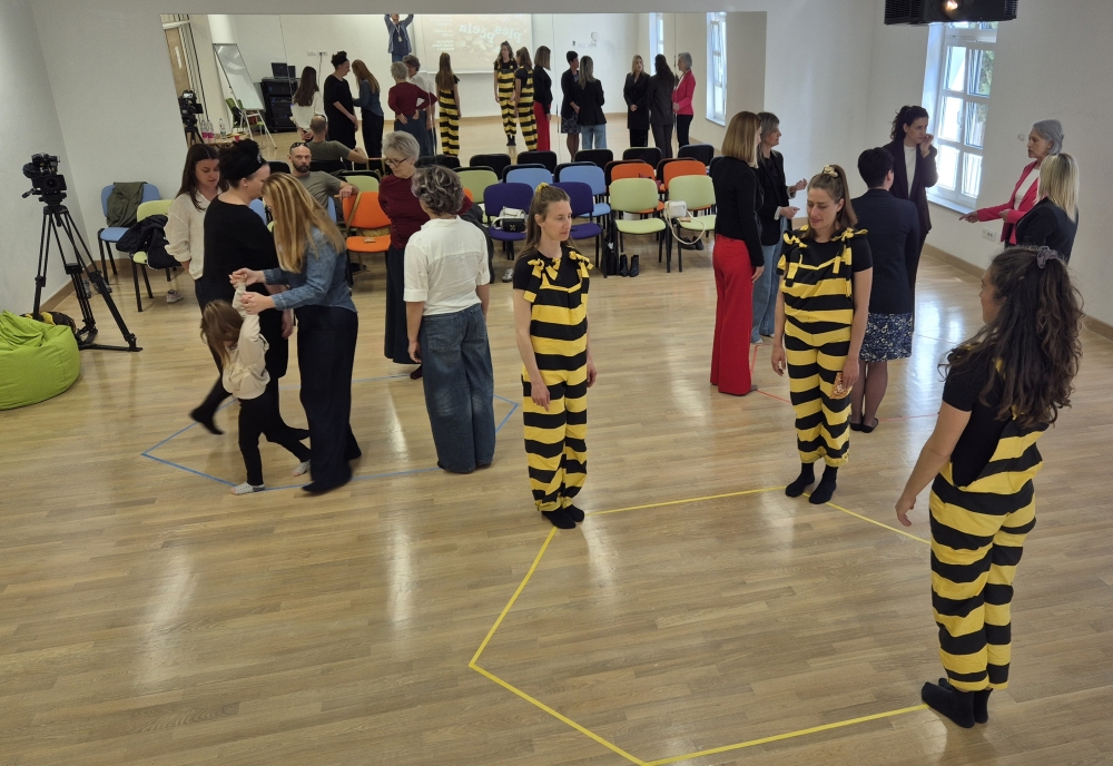Publika je imala priliku pogledati kratki dokumentarni film 🎬o projektu, ali i isprobati jednu od plesnih igara – što je bio pravi hit! 😄🙌 Inspiracija cijelog projekta? Pčele!🐝💛Ovi mali, ali nevjerojatni kukci poslužili su kao ideja za stvaranje zabavnih i suradničkih plesnih igara za djecu.