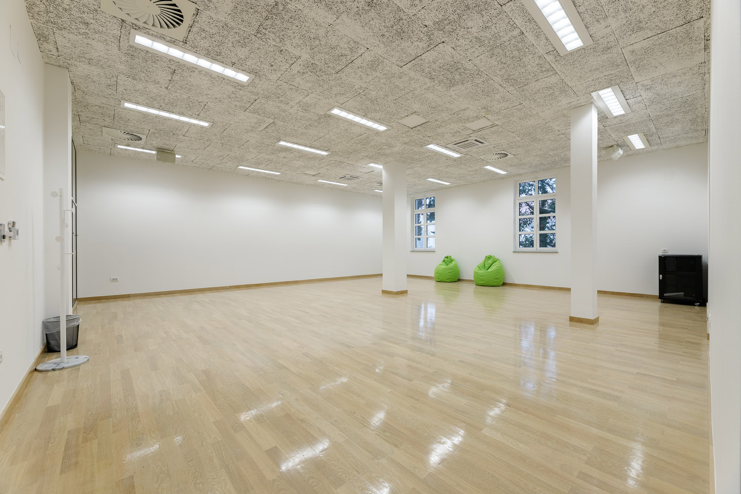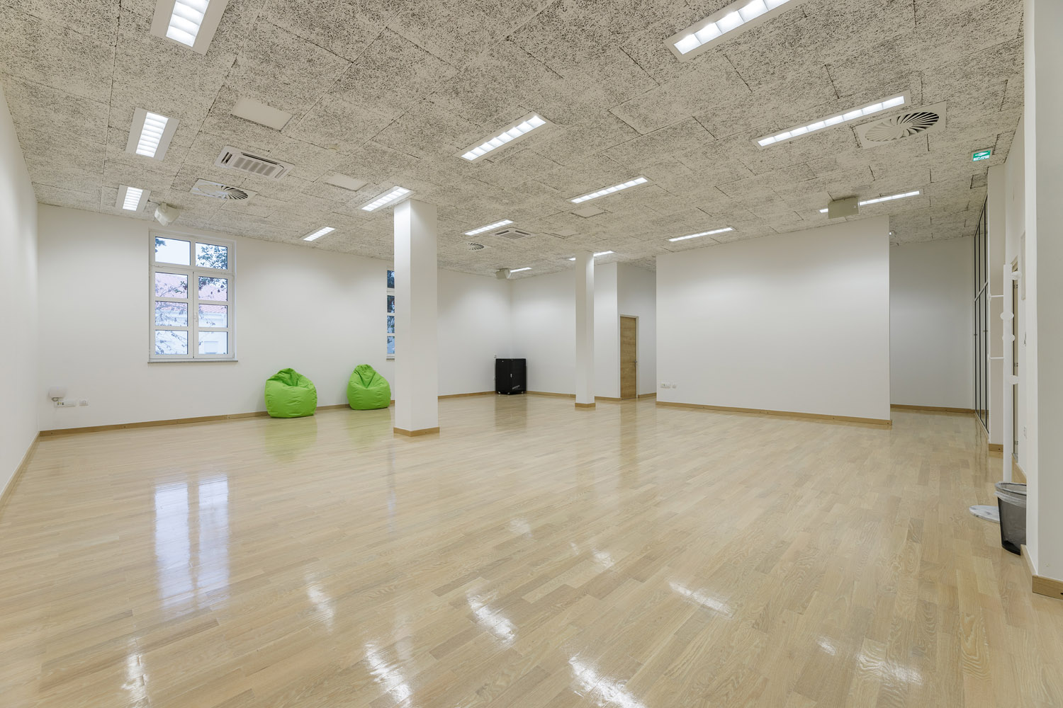 Prostor: površine 87,67 m² sa sportskim podom, s garderobom površine 15,09 m² i kupaonicom 8,80 m²