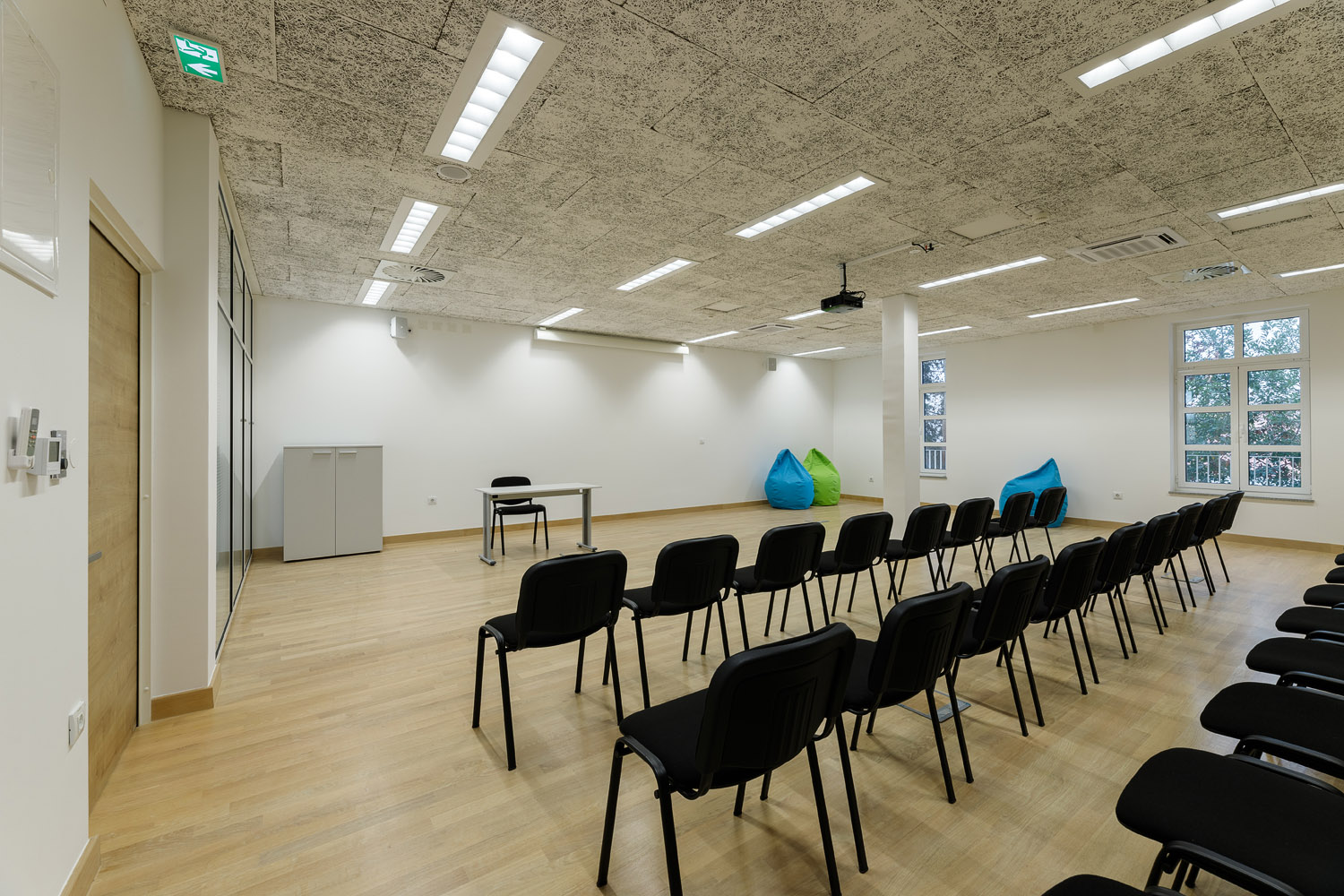 Oprema: projektor, platno, zvučnici, konferencijske sjedalice, ormari