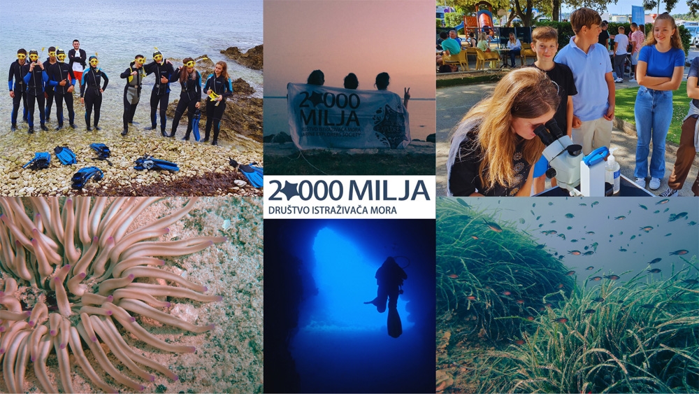Društvo istraživača mora – 20000 milja iz Zadra osnovano 2005. godine, a ime udruge inspirirano je knjigom Julesa Verna – 20000 milja pod morem. Okupljamo strastvene istraživače posvećene očuvanju morskih ekosustava i promicanju održivog razvoja. Djelujemo diljem Jadrana kroz edukaciju, znanstvena istraživanja i suradnju s lokalnim zajednicama, štiteći more i podižući svijest o njegovoj neprocjenjivoj vrijednosti.